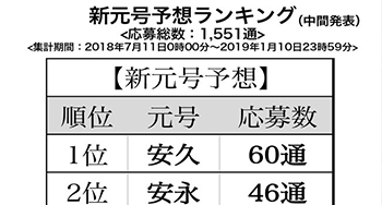 「新元号」予想ランキング、中間発表!