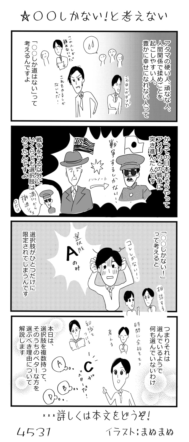 物事を決める際には、必ず選択肢を複数持って、そのうちのベターな方を選ばなきゃなら