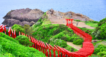 お賽銭を入れられたら幸運?青い海に真っ赤な鳥居が美しいパワースポット「元乃隅神社」